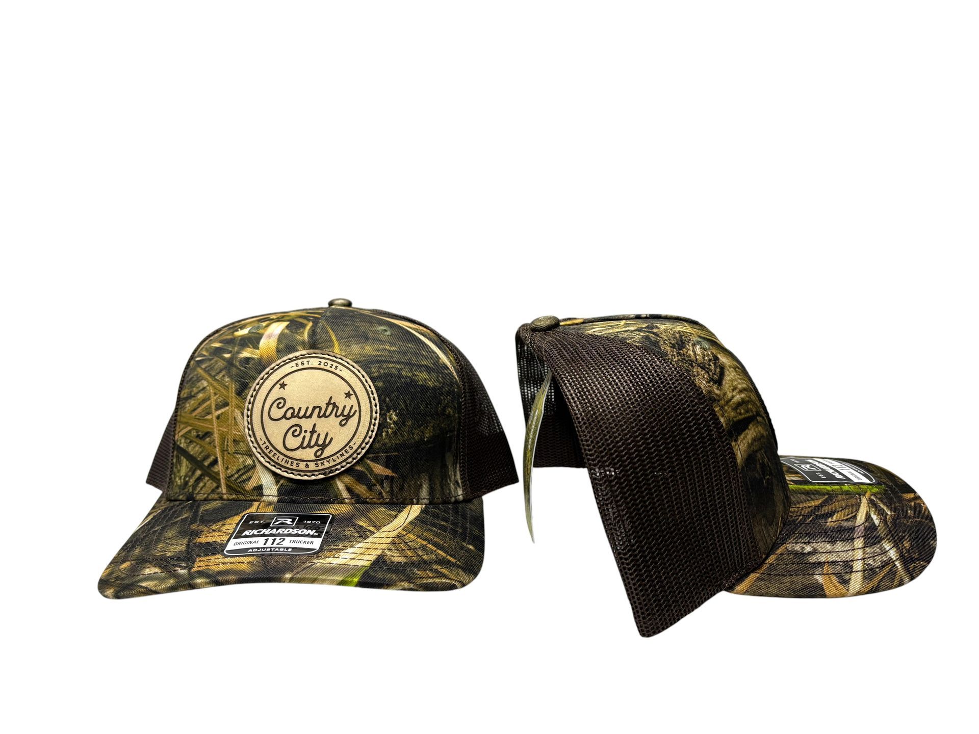 Treelines & Skylines Country City Leather Patch Duck Camo Trucker Cap
